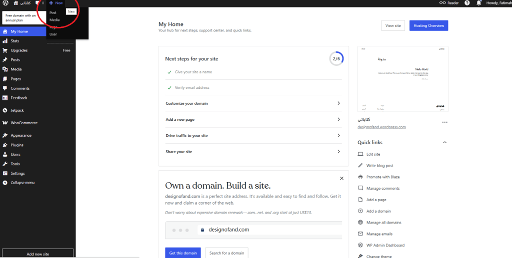 مساء الخير. هذا المكان، الوورد برس، مساحة تقليدية وآمنة لإنشاء مدونة. فيها مافيها من العقبات، لكني- مثلاً- أفضلها على غيرها من الاستضافات. إن أردت أن تؤسس مدونتك هنا، عليك تفادي بعض العقبات المصممة خصيصاً فيما يبدو للاستفادة من نفاد صبرك ودفعك للخيارات المدفوعة. طيّب مافي مشكلة، راح نشترك، لكن لا تتعاملوا بهذه الحيل الرخيصة. على أي حال. أضع هنا سكرين شوتس لتأسيس مدونة باللغة العربية باستضافة مجانية. يمكنك بالطبع ترقية موقعك فيما بعد، وهذا ما أفضّله بدلاً من الالتزام بالاشتراك المدفوع لمجرد أن الشركة تجبرك على ذلك.