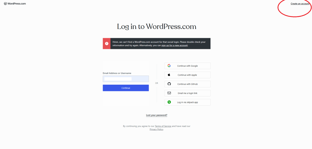 الخطوة الأولى: ستذهب إلى http://www.wordpress.com. لا تخلط بين هذا العنوان وعنوان آخر ينتهي بـ