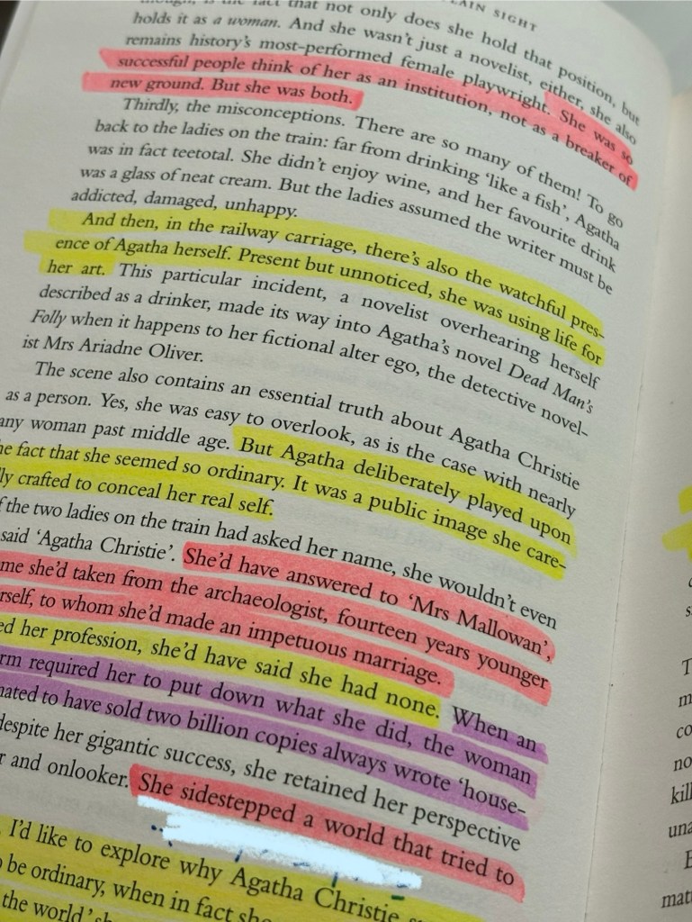 أستخدم الهايلايترز والقلم الأزرق شنايدر التوب رايتر ١٤٧. والكثير من البوست ات نوتس الصفراء والشفافة. عندي سيستم مبدئي للهايلايتس. الإضاءة الخضراء للأفكار البديهية التأسيسية في الكتاب. الفوشي للتبصّرات المركّبة. الأصفر للأمثلة. البرتقالي نار وشرار وأفكار ترجّ عقلي رجّاً.